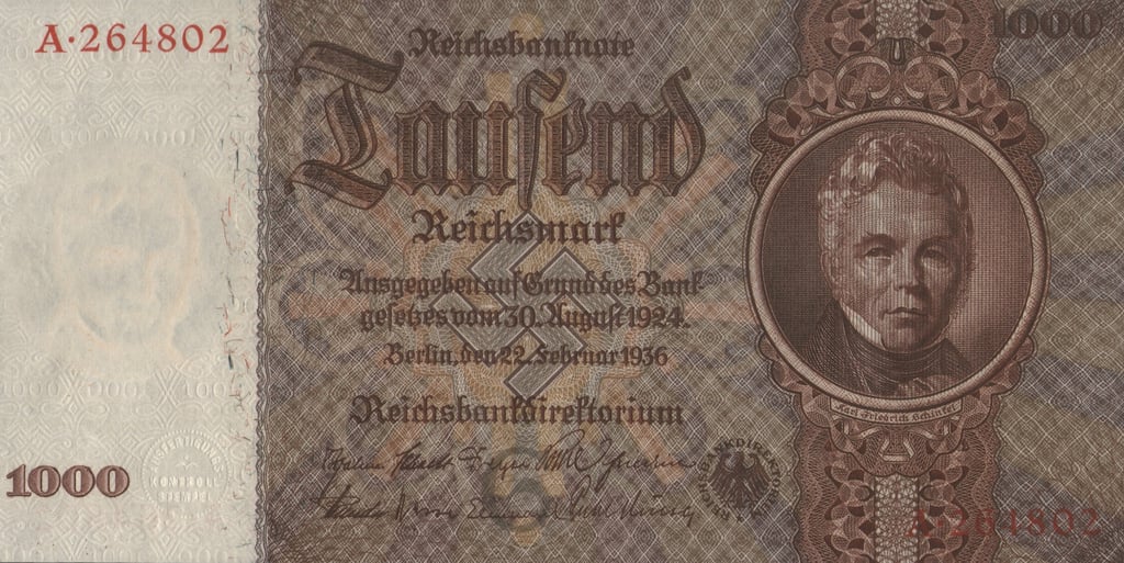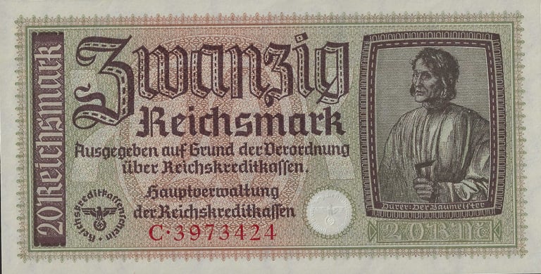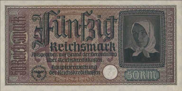 El Reichsmark fue la moneda oficial de Alemania desde 1924 hasta 1948, y durante el mandato de Hitler, se convirtió en un símbolo de la estabilidad económica que el régimen intentaba proyectar. Esta moneda, sin embargo, no fue uniforme en toda Alemania; aunque el Reichsmark tenía un diseño estándar a nivel nacional, varios Estados Alemanes emitían billetes personalizados o con particularidades que reflejaban su identidad regional y, a la vez, imprimían elementos propagandísticos ligados al régimen nazi.