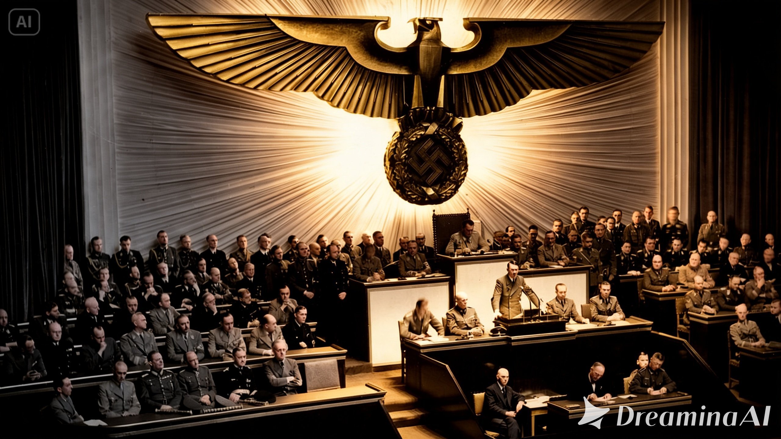 Adolf Hitler pronunciando un discurso ante el Reichstag en la Ópera Kroll de Berlín.