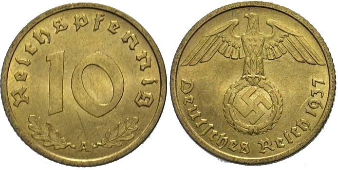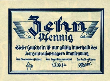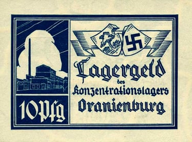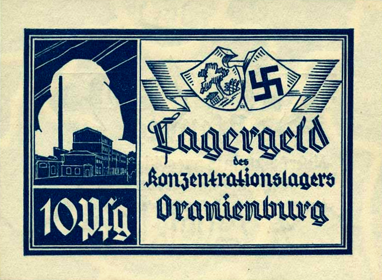 10 Pfennig de Lagergeld (dinero de campo), emitido para su uso exclusivo dentro del campo de concentración de Oranienburg en la Alemania nazi.