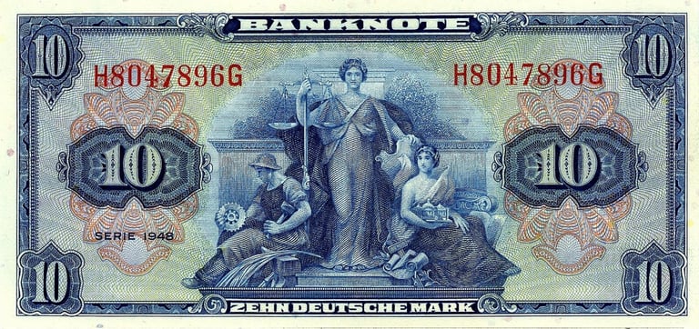 Serie de 1948, emitido por el Bank deutscher Länder en la Alemania ocupada.
