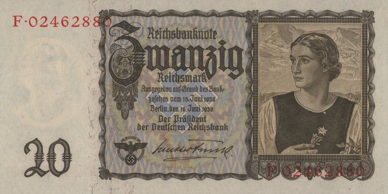 20 Reichsmark emitida en Alemania el 16 de junio de 1939.